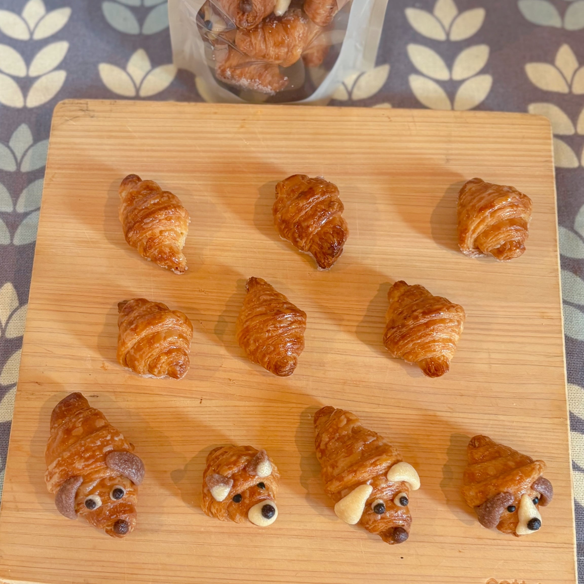 バター100%使用。粉はフランスパン用中力粉リスドォルを使用してクロワッサン生地を作り焼成、グラニュー糖を付けて低温で乾燥焼きしています。