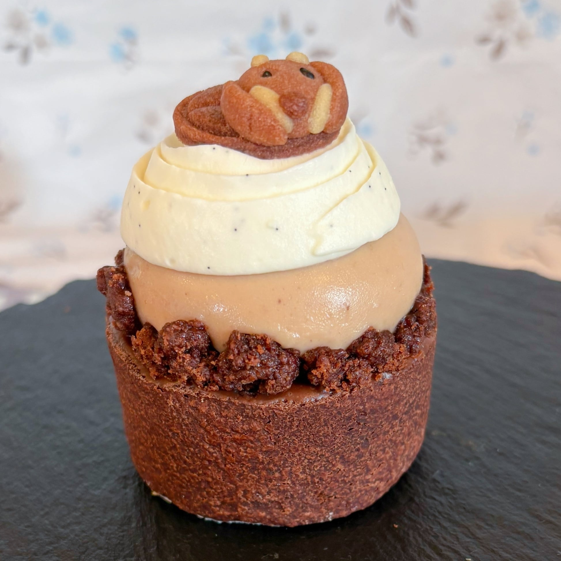 ショコラタルトにマロンガナッシュで接着して完成。 いちじくの種のプチプチ感がアクセントになっております。